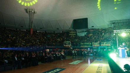 Ο φροντιστής της μπασκετικής ομάδας, Γιάννης Νικητάκης, αλλά και της ποδοσφαιρικής, Δημήτρης Τσακίρης, ξεσήκωσαν τα πλήθη με την αγάπη τους για τον σύλλογο, δίνοντας συνθήματα.