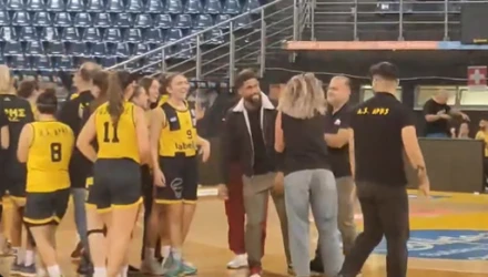 Έγινε ένα με τη γυναικεία ομάδα και στήριξε την προσπάθειά της, πανηγυρίζοντας τη νίκη κόντρα στη ΜΕΝΤ.