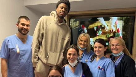 Ο διεθνής σέντερ μετέβη σε συνεργαζόμενη με την ΚΑΕ ιδιωτική κλινική, όπου φωτογραφήθηκε με το προσωπικό και δίνει ραντεβού στο γήπεδο, καθώς ετοιμάζεται για την αναμέτρηση στο Eurocup με τη Χάποελ Ιερουσαλήμ την Τετάρτη (14/1, 20:00) για την 14η αγωνιστική.