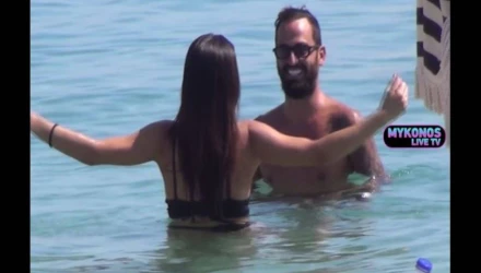 Η κάμερα του Mykonos Live TV «συνέλαβε» το ερωτευμένο ζευγάρι να περνάει όμορφες στιγμές εντός και εκτός της θάλασσας.