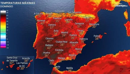 Για παράδειγμα, στην Μπανταχόθ το θερμόμετρο θα δείξει 43 βαθμούς, στην Κάθερες θα δείξει 41 και στην Ορένσε 39, όπως και στη Μαδρίτη.