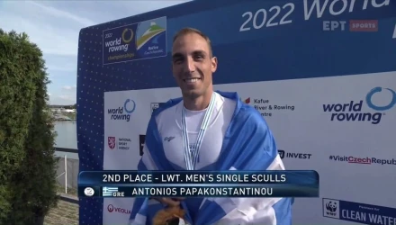 Ο Αντώνης Παπακωνσταντίνου πραγματοποίησε μια σπουδαία εμφάνιση στο τελικό του σκιφ ελ. βαρών στο παγκόσμιο πρωτάθλημα κωπηλασίας ανδρών-γυναικών του Ράζιτσε και κατέκτησε το ασημένιο μετάλλιο.