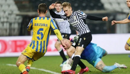 Στο 39' ο Μουργκ... ντύθηκε Αντρίγια Ζίβκοβιτς. Μετά από ασίστ του Σέρβου, μπήκε στην περιοχή, άλλαξε πόδι, άδειασε τον Μαλή και με το αριστερό έστειλε την μπάλα στην γωνία του Κνετ, ανοίγοντας το σκορ. Στο 45', μάλιστα, οι γηπεδούχοι είχαν μεγάλη ευκαιρία να πάνε με προβάδισμα ασφαλείας στα αποδυτήρια. Ο Αντρίγια Ζίβκοβιτς εκτέλεσε κόρνερ, ο Σφιντέρσκι έπιασε την κεφαλιά στο πρώτο δοκάρι, ο Κνετ απέκρουσε με τα ακροδάχτυλα και ο Ίνγκασον στο δεύτερο δοκάρι δεν μπόρεσε να σπρώξει την μπάλα στα δίχτυα.