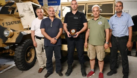 Τον Αστυνομικό Γιώργο – Τηλέμαχο Βραχνή τίμησε για την προσφορά του ο Σύλλογος Διατήρησης Ιστορικών Οχημάτων απονέμοντας του τιμητική πλακέτα για την αναβάθμιση του υπηρεσιακού Skoda Octavia .