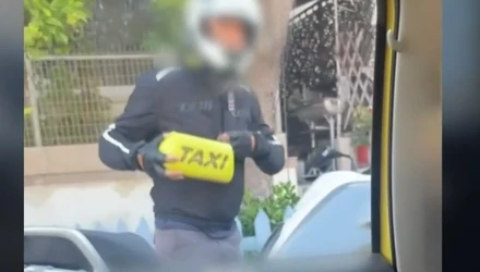 Σύμφωνα με το βίντεο που δημοσιεύτηκε στο TikTok και μεταδόθηκε από την τηλεόραση του ΣΚΑΪ, τουρίστρια επιβάτιδα του ταξί, καταγράφει τη στιγμή που ο οδηγός μηχανής πλησιάζει το όχημα και αφαιρεί το «καπέλο», που βρίσκεται στον «ουρανό» του αυτοκινήτου της.