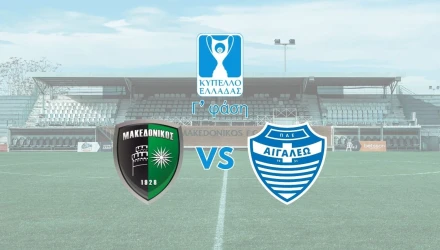 Σε λιγότερο από μία ώρα θα αρχίσει η αναμέτρηση του Μακεδονικού με το Αιγάλεω στο πλαίσιο της τρίτης φάσης του Κυπέλλου Ελλάδας.