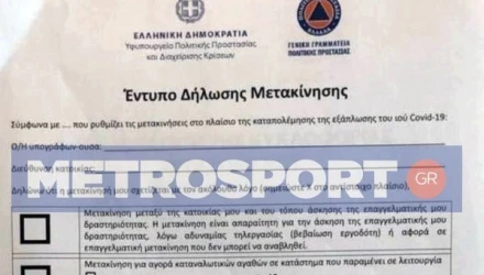 Δείτε το έντυπο δήλωσης μετακίνησης που έχει εισηγηθεί η Πολιτική Προστασία να συμπληρώνουν οι πολίτες σε περίπτωση που τελικώς αποφασιστεί η απαγόρευση κυκλοφορίας στη χώρα.