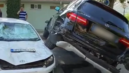 Ο οδηγός ενός μαύρου SUV, στην προσπάθειά του να εξέλθει από τον χώρο, έχασε τον έλεγχο του οχήματος και προκάλεσε εκτεταμένες ζημιές σε τουλάχιστον επτά οχήματα που ήταν παρκαρισμένα.