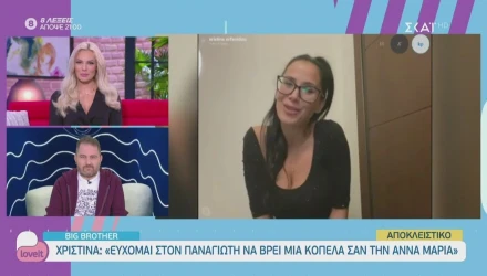 Καλεσμένοι στην εκπομπή «Love It» Χριστίνα και Παναγιώτης μίλησαν για το Big Brother και την μεταξύ τους σχέση. Μάλιστα, η Χριστινα ευχήθηκε στον έτερο συμπαίκτη της να βρει μια κοπέλα κοντά στην ηλικία του.
