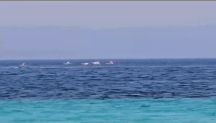 Μια ομάδα φλαμίνγκο απόλαυσαν τη θάλασσα και τα ζεστά νερά στην παραλία της Τρανής Αμμούδας, στο δεύτερο πόδι της Χαλκιδικής.