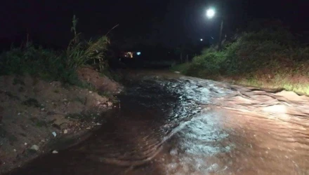 Όπως φαίνεται στις φωτογραφίες που δημοσιεύει το Xalkidiki Politiki, η κακοκαιρία που επικρατεί έντονη βροχόπτωση δημιούργησε προβλήματα στην Χαλκιδική, στην περιοχή της Τορώνης, καθώς υπερχείλισε το ρέμα, με αποτέλεσμα οι δρόμοι να γεμίσουν νερό.