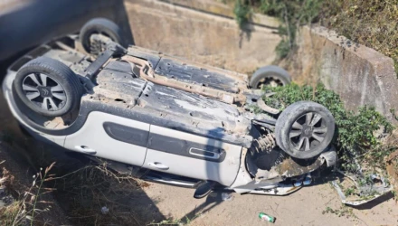 Μετά τη σύγκρουση, το όχημα του Καρρά ανετράπη και κατέληξε σε ρείθρο.