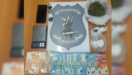 Στο πλαίσιο της έρευνας, συνελήφθη το μεσημέρι της Παρασκευής ένας 16χρονος Έλληνας ο οποίος, μαζί με έναν 17χρονο από την Αλβανία τα στοιχεία του οποίου έχουν ταυτοποιηθεί, έκρυβε στο οίκημα μία συσκευασία με κοκαΐνη βάρους 15,1 γραμμαρίων, δυο συσκευασίες με ακατέργαστη κάνναβη βάρους 77,5 γραμμαρίων και μία ηλεκτρονική ζυγαριά, τα οποία κατασχέθηκαν.