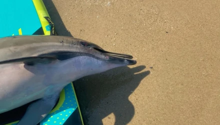 Σύμφωνα με την ανακοίνωση μάλιστα πρόκειται για ένα ενήλικο θηλυκό δελφίνι. Το δελφίνι είχε ένα εμφανές εξωτερικό τραύμα πίσω από το δεξί του πλευρικό πτερύγιο. Το τραύμα πιθανώς να έγινε από αιχμηρό αντικείμενο και επέφερε τον θάνατο του ζώου, ενώ στο ουραίο πτερύγιο του ήταν δεμένο ένα σχοινί.