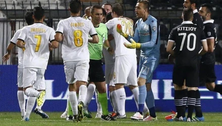 Μεγάλη ένταση στο φινάλε του αγώνα μεταξύ ΠΑΟΚ και ΑΕΚ για την πρεμιέρα των playoffs, όπου βρήκε νικητές τους «ασπρόμαυρους» με 2-1.