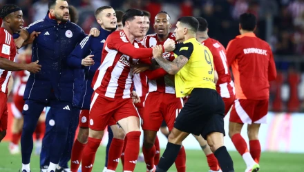 Μετά τη λήξη του ντέρμπι ντέρμπι του «Γεώργιος Καραϊσκάκης», όπου ο Ολυμπιακός πανηγύρισε το 48ο πρωτάθλημα της ιστορίας, σημειώθηκε ένταση μεταξύ των ποδοσφαιριστών των δύο ομάδων.