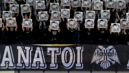 Οι «ασπρόμαυροι» ταξιδιώτες τίμησαν τη δολοφονία του 20χρονου οπαδού του ΠΑΟΚ, Κλεομένη, που δολοφονήθηκε στην Καλαμαριά, φορώντας το πρόσωπό του στην αναμέτρηση του τμήματος χάντμπολ στη Δράμα.
