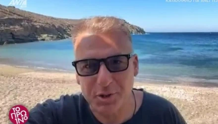 Ο παρουσιαστής εμφανίστηκε ζωντανά μέσω σύνδεσης από την Τήνο, όπου παραμένει αποκλεισμένος λόγω απαγορευτικού απόπλου.