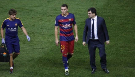 Ο Βέλγος αμυντικός της Μπαρτσελόνα, αποχώρησε από τον αγωνιστικό χώρο του «Βιθέντε Καλντερόν» μόλις έπειτα από 25 λεπτά αγώνα το βράδυ του Σαββάτου, με τράβηγμα το οποίο κατάλαβε από την πρώτη στιγμή κι έκανε νόημα για αλλαγή.