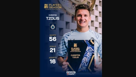 Το Transfermakt ανακήρυξε τον Χρήστο Τζόλη ως τον πολυτιμότερο ποδοσφαιριστή της σεζόν (2024-25) στη Jupiler Pro League του Βελγίου, αναγνωρίζοντας την τρομερή χρονιά που πραγματοποίησε με ποιότητα, σταθερότητα και αξιοπιστία, όπως και το γεγονός πως είχε ηγετικό ρόλο στην Κλαμπ Μπριζ.