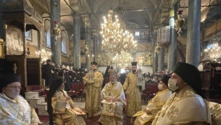 Στη Θεία Λειτουργία, που τελέστηκε στον Πατριαρχικό Ναό, προεξήρχε ο πατριαρχικός επίτροπος μητροπολίτης Γέρων Χαλκηδόνος Εμμανουήλ και συλλειτούργησαν οι μητροπολίτες Φιλαδελφείας Μελίτων, Μυριοφύτου και Περιστάσεως Ειρηναίος, Μύρων Χρυσόστομος και Προύσης Ιωακείμ.