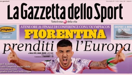 Η Quotidiano Sportivo αναφέρεται επίσης στο ίδιο θετικό σενάριο για την Ιταλία, σύμφωνα με το οποίο αν κερδίσει το Conference League η Φιορεντίνα, θα βγει στην Ευρώπη και η 9η της κατάταξης, Τορίνο: «Η νύχτα των «βιόλα» το ιταλικό όνειρο».