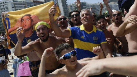 Boca Juniors fans have taken over a section of Copa Cabana beach in Rio de Janeiro.