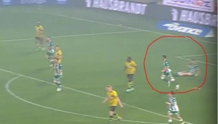 Όπως ήταν λογικό, ο πορτιέρε των πράσινων έπεσε στο έδαφος, εξαιτίας του ωστικού κύματος που προκάλεσε η έκρηξη της κροτίδας. Όμως δεν ήταν ο μόνος...Αν παρατηρήσει κανείς προσεχτικά τη φάση, μπορεί να διαπιστώσει πως και ο Μπαρτ Σένκεφελντ έπεσε, όμως αντανακλαστικά εκείνος σηκώθηκε και συνέχισε.