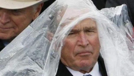 Προσπάθησε αλλά δεν τα κατάφερε με το αδιάβροχο ο Τζορτζ Μπους! (pic)