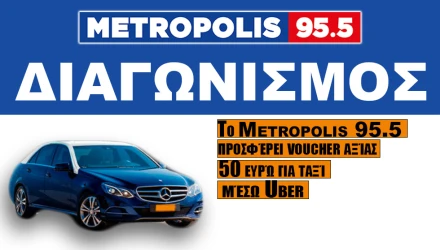 Το Metropolis 95.5, ο αγαπημένος σας ραδιοφωνικός σταθμός, σας προσφέρει συνολικά οκτώ voucher, αξίας 50 ευρώ το καθένα, προκειμένου να πραγματοποιήσετε δωρεάν τις μετακινήσεις σας με ταξί μέσω Uber.