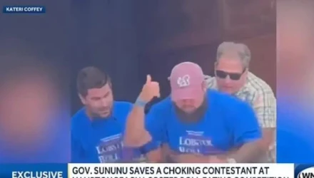 Σωτήρια και καθοριστική αποδείχθηκε η παρέμβαση που έκανε ο κυβερνήτης του Νιου Χάμσαιρ, Κρις Σουνούνου, κατά τη διάρκεια αγώνα ταχυφαγίας όταν έσωσε διαγωνιζόμενο εφαρμόζοντας τη λαβή Χάιμλιχ.