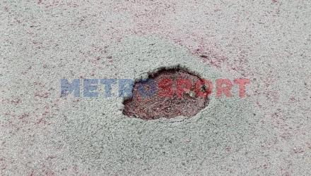 Το γήπεδο μοιάζει εγκαταλελειμμένο. Το ταρτάν, σε πολλά σημεία, έχει υποχωρήσει, με τρύπες, φθορές και ανωμαλίες στην επιφάνειά του να δυσχεραίνουν τις προσπάθειες των αθλητών και να καθιστούν επικίνδυνη κάθε προσπάθεια άθλησης.