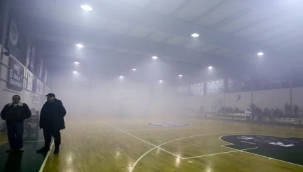 Τα μικρά παιδιά που βρέθηκαν στο γήπεδο ασφυκτιούσαν λόγω καπνογόνων που άναψαν οπαδοί του Ολυμπιακού στο κλειστό γυμναστήριο.