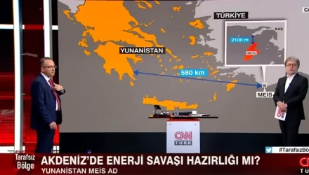 Σε άλλο σημείο της εκπομπής, ο διευθυντής της Hurriyet υπεραμύνεται του τουρκικού αφηγήματος για το Καστελόριζο, χαρακτηρίζοντας «έκτρωμα» το γεγονός πως το νησί ανήκει στην Ελλάδα.