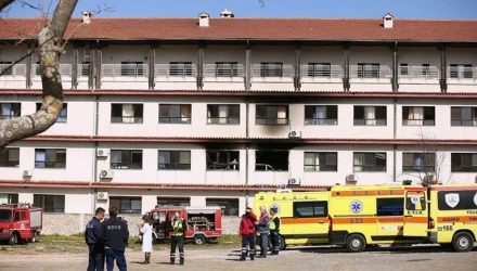 «Σας ενημερώνουμε ότι σήμερα 6 Απριλίου και περί ώρα 08.50 πρωινή εκδηλώθηκε αιφνιδίως φωτιά σε θάλαμο νοσηλείας της κλινικής COVID (Πέτρινο Κτίριο, 2ος όροφος) του Νοσοκομείου. Ενημερώθηκαν άμεσα η Πυροσβεστική Υπηρεσία, το Αστυνομικό Τμήμα Πυλαίας – Χορτιάτη και το ΕΚΑΒ – ΕΚΕΠΥ Β. Ελλάδος. Η Πυροσβεστική Υπηρεσία ανταποκρίθηκε με μεγάλη δύναμη και ειδικά οχήματα, και κατορθώθηκε σε πολύ σύντομο χρόνο να τεθεί σε έλεγχο και να κατασβεστεί η πυρκαγιά. Επίσης, μονάδες του ΕΚΑΒ – ΕΚΕΠΥ προσήλθαν στο Νοσοκομείο για την διαχείριση τυχόν επειγόντων περιστατικών, ενώ από την Αστυνομική Αρχή λήφθηκαν τα απαιτούμενα μέτρα τάξης.