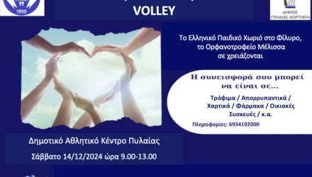 Το Σάββατο 14 Δεκεμβρίου, με αφορμή τη παγκόσμια μέρα παιδιού (11 Δεκεμβρίου), ο Α.Μ.Ο. Εθνικός Πυλαίας και ο Δήμος Πυλαίας – Χορτιάτη “γεμίζουν παιδικά χαμόγελα” στο κλειστό γυμναστήριο ΔΑΚ Πυλαίας, προσκαλώντας όλες τις ακαδημίες βόλεϊ του δήμου να συμμετέχουν στο, καθιερωμένο πλέον, φιλανθρωπικό τουρνουά.