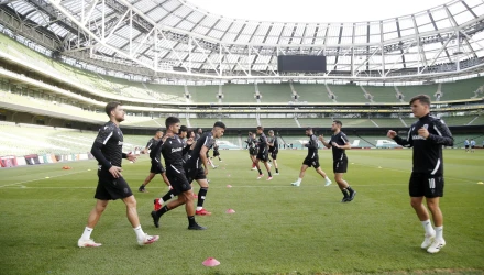 Η προπόνηση του Δικεφάλου στο Δουβλίνο είχε ασκήσεις τακτικής στην επιθετική ανάπτυξη της ομάδας.