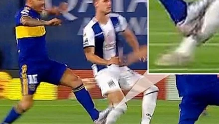 Με τη συμπλήρωση ακριβώς τριών δευτερολέπτων στον αγώνα της Μπόκα Τζούνιορς με την Ταγιέρες Κόρντομπα ο 36χρονος Κάρλος Τέβεζ, προσγείωσε με έναν «δολοφονικό» τρόπο τη σκάρα του παπουτσιού του πάνω στο πόδι του Ποκετίνο, χωρίς να δεχθεί ούτε κάρτα.