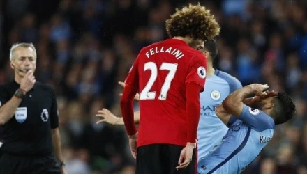 Ο Βέλγος χωρίς λόγο έκανε... τσαμπουκά με τον Αγκουέρο και όταν συγκρούστηκαν τα κεφάλια τους, ο Αργεντινός έκανε σαν να έπαθε ηλεκτροπληξία, κερδίζοντας την αποβολή του Φελαϊνί.