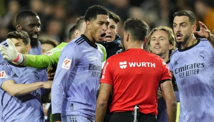 Ο Μπέλιγχαμ έστειλε τη μπάλα στα δίχτυα, κάνοντας το 3-2 υπέρ της Ρεάλ, αλλά ο Μανθάνο έληξε το παιχνίδι ενώ η μπάλα ήταν στον αέρα, με τον μέσο της "βασίλισσας" να μην μπορεί να συγκρατήσει τα νεύρα του, ξεσπώντας κατά του διαιτητή.