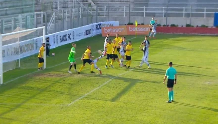 Στο 21ο λεπτό ο Τσαούσης εκτέλεση το κόρνερ και ο Παναγιώτου πέτυχε ένα εντυπωσιακό με γυριστό σουτ με πλάτη στο τέρμα και μαρκαρισμένος.