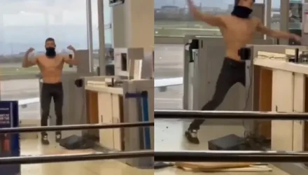 Η Daily Mail αναφέρει πως ο άνδρας που έσπειρε το χάος, συνελήφθη αφού βιντεοσκοπήθηκε να ξηλώνει, να πετά καρέκλες και να σπάει ηλεκτρικά τρόλεϊ στον τερματικό σταθμό με μανία. Πλάνα που κοινοποιήθηκαν στα social media, δείχνουν τον άνδρα να έχει απογυμνωθεί από τη μέση και πάνω, καθώς τριγυρίζει στο αεροδρόμιο εκσφενδονίζοντας αντικείμενα, με κοινό τους σαστισμένους επιβάτες.