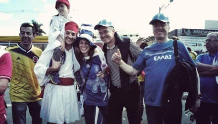 Μπορεί τα χρώματα των Κολομβιανών να επικρατούν, όμως οι Έλληνες που κατάφεραν να ταξιδέψουν στην Βραζιλία έκαναν αισθητή την παρουσία τους και η ΕΠΟ παρουσίασε μέσω του επίσημου καναλιού της στο Youtube την ανυπομονησία τους για το ματς.