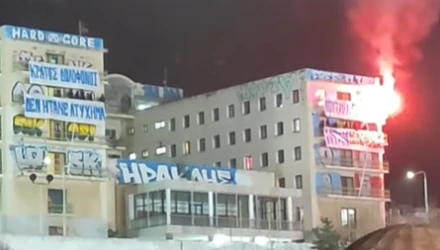 Έγκλημα στα Τέμπη: Οπαδοί του Ηρακλή στους Χορτατζήδες με πανό και πυρσούς!