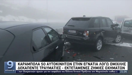 Διαλυμένα αυτοκίνητα, εγκλωβισμένοι πολίτες, πολύωρη ταλαιπωρία με φόντο ένα θολό τοπίο. Αυτές είναι οι εικόνες που καταγράφηκαν το πρωί στην Εγνατία Οδό από την απίστευτη καραμπόλα 50 οχημάτων που προκάλεσε η πυκνή ομίχλη στο ρεύμα κυκλοφορίας από Βέροια προς Κοζάνη.