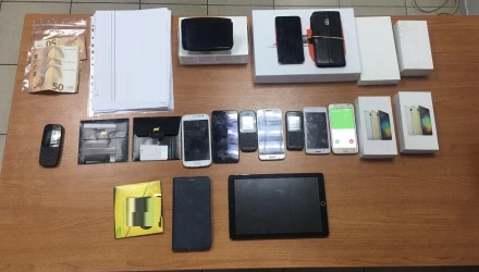 Στο πλαίσιο των ερευνών, εντοπίσθηκαν και κατασχέθηκαν συνολικά 9 κινητά τηλέφωνα, 3 κάρτες τηλεφώνου sim, μία ηλεκτρονική συσκευή (tablet) και χρηματικό ποσό 215 ευρώ. Επιπλέον, κατασχέθηκε ένα όχημα που χρησιμοποιούσε ο 53χρονος.