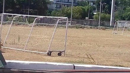 Όπως μπορείτε να δείτε στις φωτογραφίες που φιλοξενούμε παρακάτω, ο αγωνιστικός χώρος του γηπέδου βρίσκεται σε πολύ κακή κατάσταση, κάτι που, σίγουρα, δεν αρμόζει στο παρελθόν και στην ιστορία του συλλόγου.