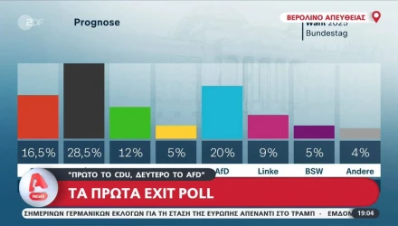 Τα ποσοστά που δίνει το exit poll του δικτύου ZDF στα κόμματα είναι τα εξής:
