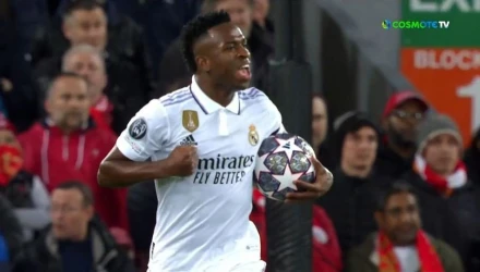 Η Ρεάλ παρά το σοκ από τα δύο γρήγορα της Λίβερπουλ, βρήκε την ευκαιρία να ξαναμπεί στο παιχνίδι χάρη στο τρομερό γκολ του Βινίσιους στο 21΄.
