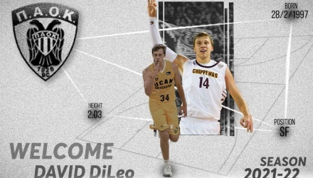 Η ανακοίνωση με το βιογραφικό του Αμερικανού: «Η ΚΑΕ ΠΑΟΚ ανακοινώνει την συμφωνία με τον Αμερικανό καλαθοσφαιριστή David DiLeo, ο οποίος θα αγωνιστεί στην ομάδα μας την αγωνιστική περίοδο 2021-22. Καλωσορίζουμε τον David DiLeo στην οικογένεια του ΠΑΟΚ.